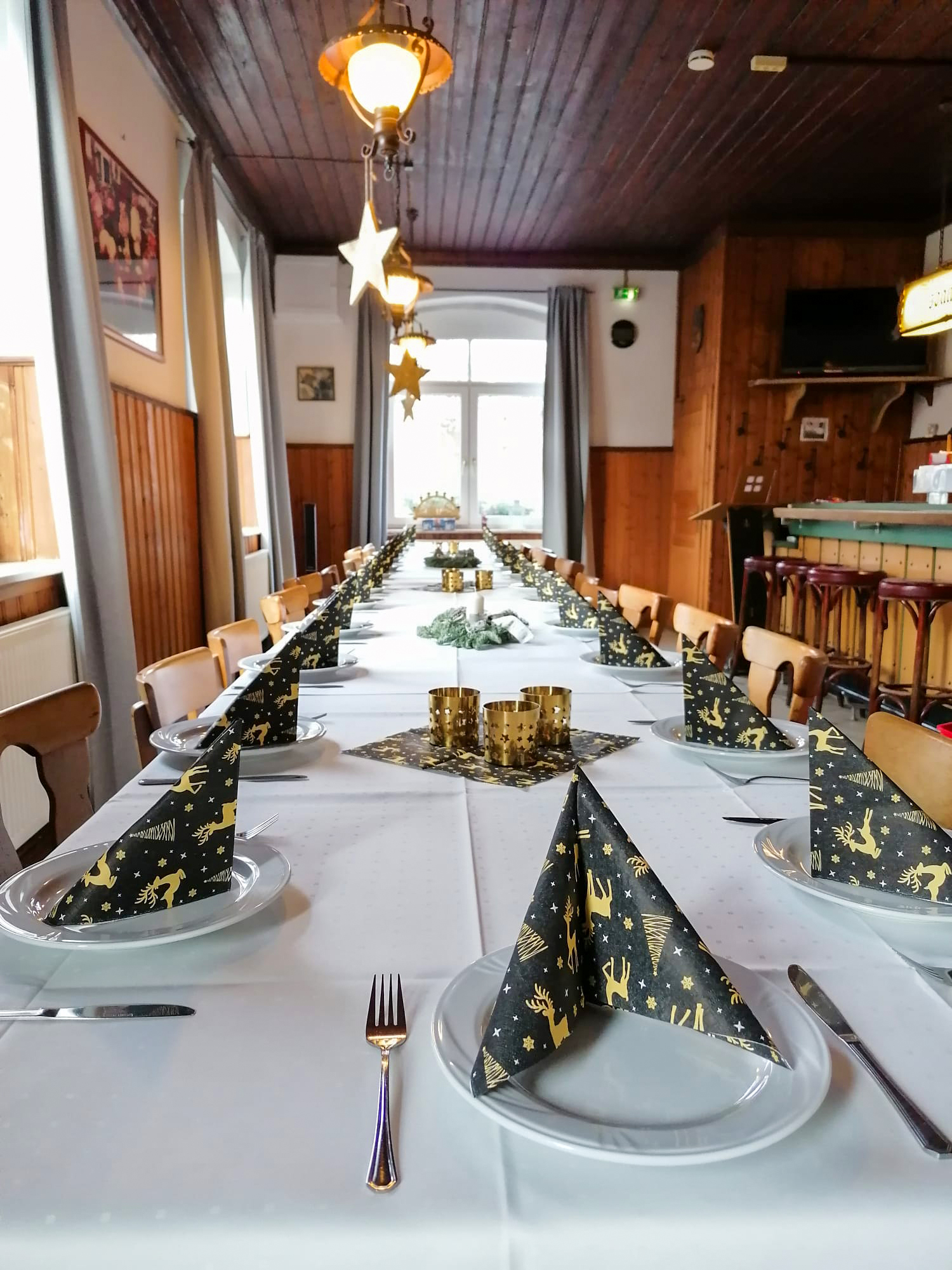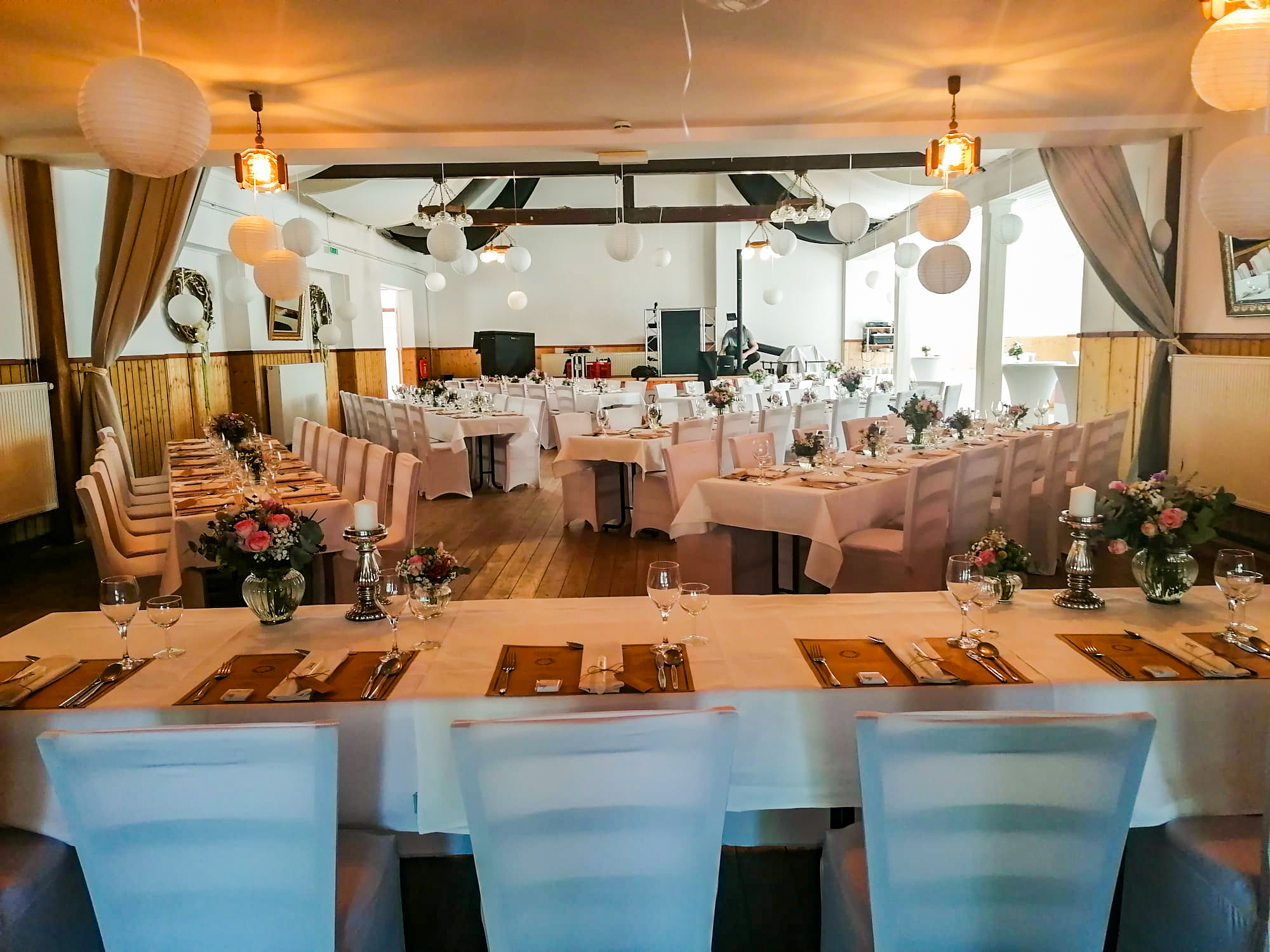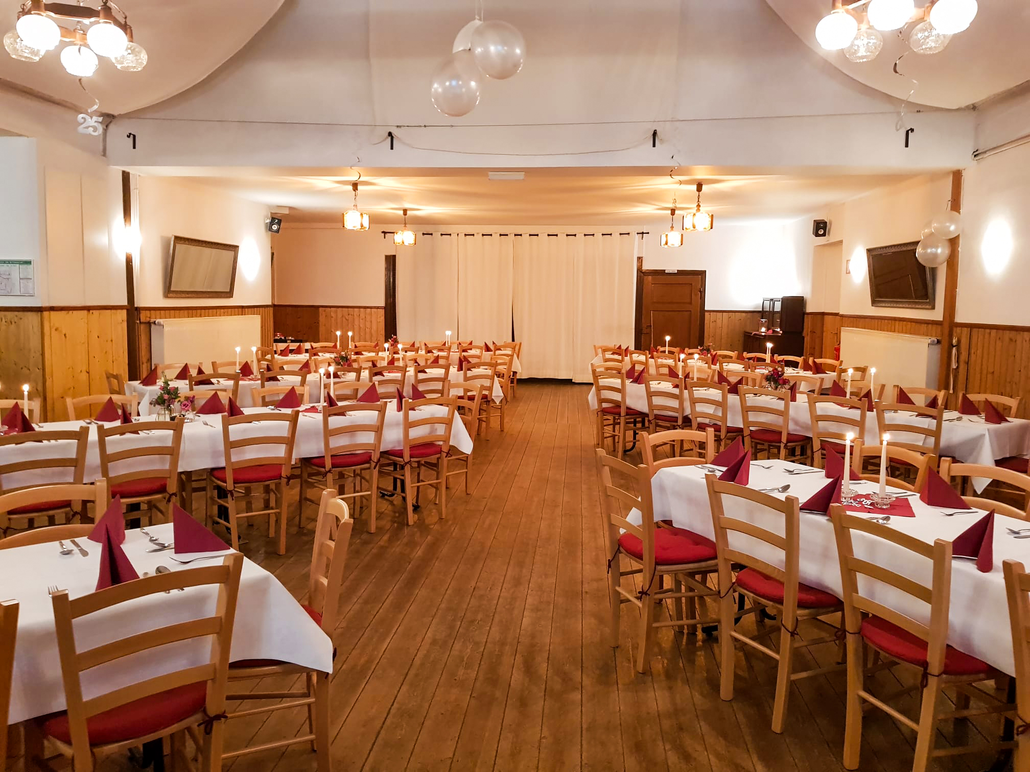 Unser Saal bietet zudem ideale Bedingungen für Live-Musik und DJs – inklusive erhöhter Bühne. Für Präsentationen oder besondere Anlässe kann auch unsere Beamer-Technik genutzt werden.